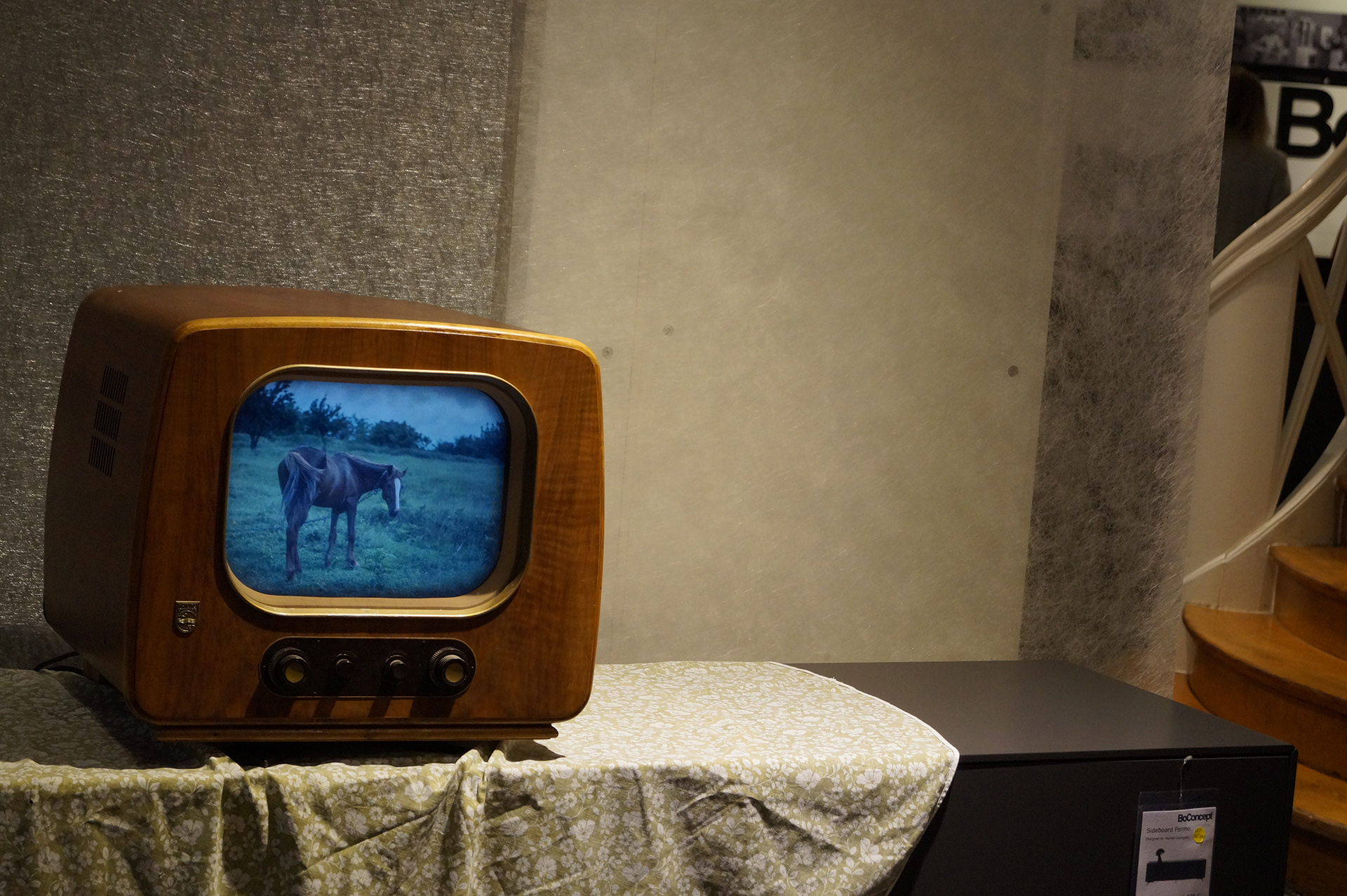 Ausstellungsansicht: Chris Roemer – 50er Jahre Fernseher mit Fotografien der Serie Stratlevo